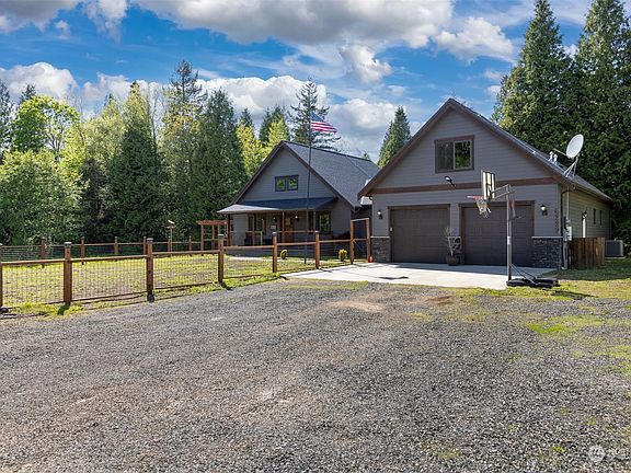 2018 custom built home on 15+ private acres just outside city of Ferndale. Main floor living with 14' living room ceiling, open kitchen w/covered front and back porches. Pond, barbecue area w/cover, shop, treehouse and plenty of acreage to roam. So many features: solar panels, heat pump (a/c), tankless water heater, media cabinet, wood wrapped windows/doors, wood floors, upstairs family room above the large garage, large master bedroom on main floor with large windows overlooking the park-like property w/large closet, double sinks and rolling barn door. And don't forget the granite counters, mud room, unique built-in beds in 2 bedrooms and desirable floorplan. Must see home! Home warranty offered by seller.