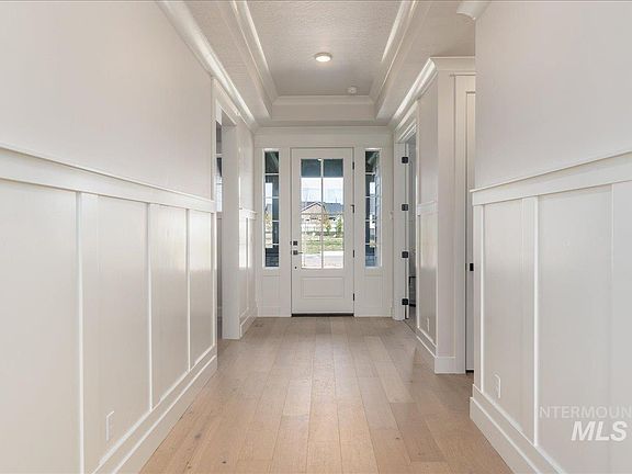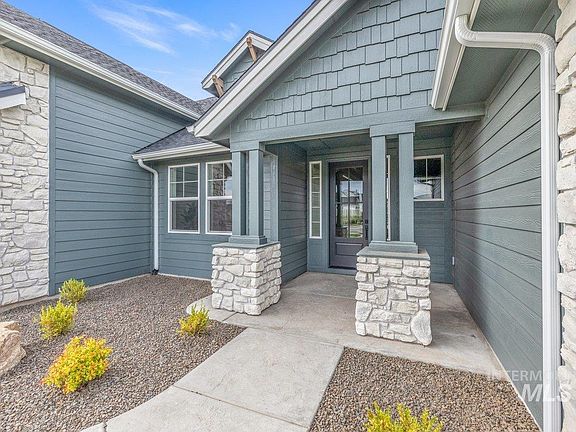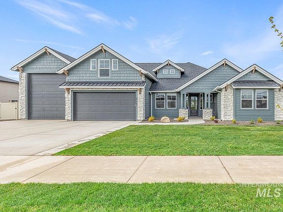 Located in the luxury Eagle community of Stags Crossing. Todd Campbell Custom Homes presents the "Ventura Bonus RV" with custom finishes including professional series Wolf® appliances: 36" gas range, double ovens, microwave, + SubZero® fridge + Asko dishwasher. The garage is 1350+ SQ FT & includes a 47 Ft RV Bay with 14 ft door, + fully insulated with epoxy flooring! Main level living with spectacular cathedral style windows are the highlight of the great room plus custom cabinetry and open built in's perfectly frame the gas fireplace. Bonus + full bath upstairs make a great guest suite or private retreat. Gorgeous primary suite with two separate vanities, soaker tub and tiled walk in shower with thru access from walk in closet to laundry to mud room. Formal office + built in home tech center provide private areas for work or homework. Large .38 lot is fully landscaped and fenced backing to walking path along stags waterway to the rear, and common area to the front making the lot feel even more spacious.