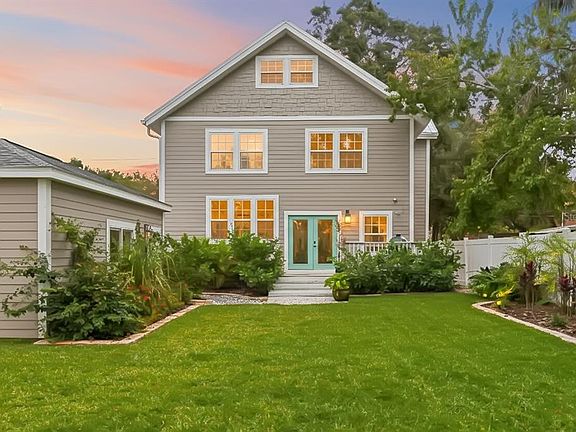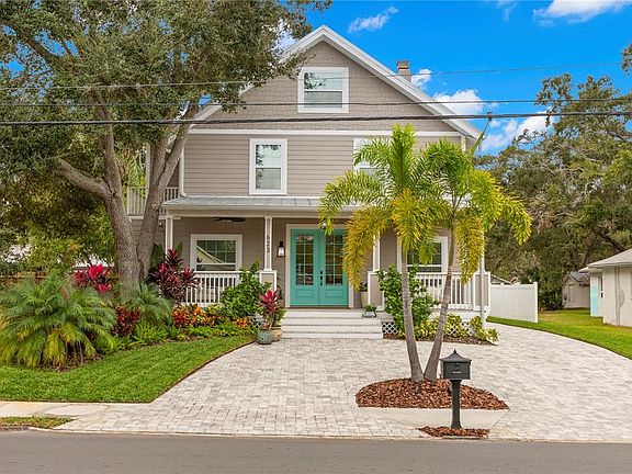 Welcome home to 623 1st Ave N in Safety Harbor FL that is set on a picturesque, tree-lined street, this beautifully reimagined 1925 residence radiates the charm, character, and warmth that define Safety Harbor’s most beloved homes. 4 bedrooms plus a den/home office and 5 full baths. From the moment you step onto the wide front porch framed by mature landscaping and double turquoise doors, the home feels inviting, soulful, and distinctly crafted. This location delivers the ideal Safety Harbor lifestyle. Enjoy effortless walks to downtown cafés, boutiques, 3rd Friday night events, Sunday markets and local festivals, and the iconic Safety Harbor Resort & Spa. Spend weekends exploring the waterfront vistas of Philippe Park, just moments away. Step outside and within minutes, hop onto the 13 mile Ream Wilson Trail for morning rides or evening strolls along the waters of Tampa Bay. Clearwater Beach and Tampa airport remain easily accessible, making travel and coastal adventures wonderfully convenient. Inside, nearly 3,800 square feet unfold with a thoughtful blend of period charm and modern design. Rich millwork, plantation shutters, warm flooring, and a wood-burning fireplace anchor the open main floor and highlight the home’s character. The living and dining spaces flow naturally into the designer kitchen featuring a 9-foot island, marble countertops, stainless steel appliances, pot filler, and an expansive butler’s pantry. A first-floor office with custom built-ins offers an elevated work-from-home environment. At the rear of the home, a set of French doors opens to the backyard, creating a seamless indoor–outdoor connection and enhancing the home’s inviting, relaxed atmosphere. Upstairs, every bedroom is a true ensuite, offering exceptional comfort and privacy. The primary suite includes a large walk-in closet and a spa-inspired bath with a luxury soaking tub, dual vanities, and a multi-jet shower with multiple shower heads. A well-placed second-floor laundry adds daily convenience. The third floor provides flexible space ideal for a media room, playroom, studio, fitness area, or additional guest suite. Outdoor living is a defining element of this property. The welcoming front porch sets the tone for neighborly connection and slow, easy mornings with a cup of coffee. The back deck, accessed through French doors, overlooks a private tropical yard with new sod and irrigation, lush foliage, and fruiting Meyer lemon and lime trees. A charming cottage-style shed enhances the appeal and functionality of the space. A detached, oversized garage has been finished with air conditioning, butcher block counters, and shiplap walls. It includes a 12,000-watt generator hook-up, pegboard walls, built-in cabinets, drawers, and abundant storage, making it an ideal gym, studio, workshop, or climate-controlled utility space. High-end upgrades such as impact windows and doors, CAT 6 internet, stainless steel appliances, marble countertops, and fully updated systems, including HVAC, plumbing, electrical, and water heater (all 2021). A new standing seam metal roof was installed in 2024. Non-flood zone, and no HOA, the home offers peace of mind alongside its unmistakable charm and character. Historic charm. Modern luxury. A walkable coastal lifestyle unlike anything else. Welcome home.