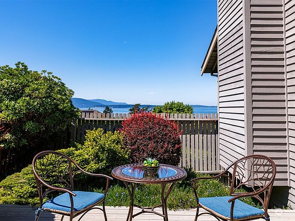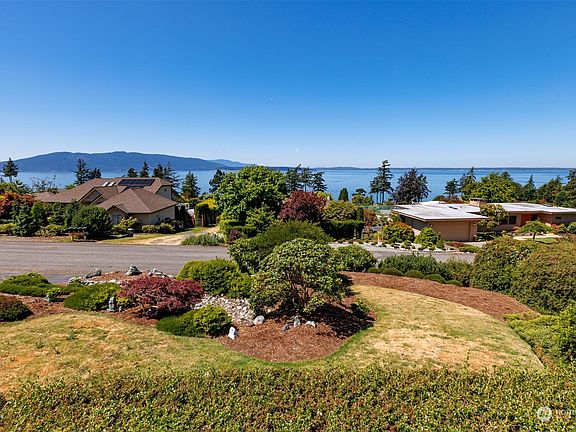 This home is proudly situated on a large parcel surrounded by mature landscaping with unobstructed salt water and San Juan Island views. The floor plan has main floor living and includes formal and informal dining and living, as well as a defined entry, open stairway, and main floor living. The primary suite opens and looks out to a private courtyard for a very "Zen like" feeling. Each of the living spaces has a gas fireplace and vaulted ceilings. The late 70's architectural design and quality of this home is very retro and untouched, just well maintained. There are 3 large beds upstairs with a full bath and family room with bay views. This was temporarily off the market for work orders to be done and it is move-in ready now!