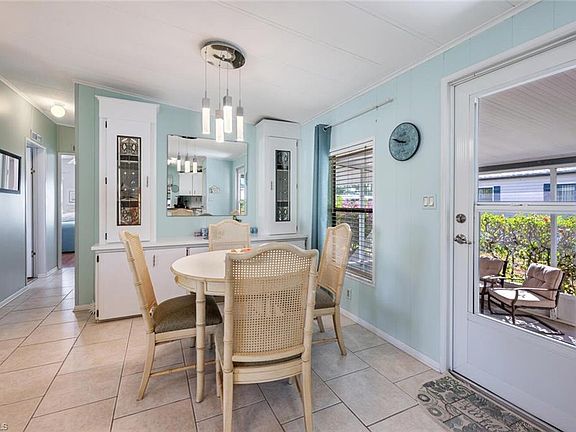 This stylish 2BR/2BA home features a spacious 240 s/f glass enclosed Florida Room that is under air and provides a panoramic view from the back of the home. The home is being sold TURNKEY, with quality furniture. There is tile flooring in the main living areas and laminate in the bedrooms, and all the flooring is in excellent condition. The screened-in front lanai has ample seating for indoor/outdoor living and there is an additional back patio ideal for grilling. The A/C is newer (2024). There is a well for lawn irrigation (that will significantly reduce your water bill) and a shed for additional storage. Riviera Golf Estates has one of the lowest HOA fees in East Naples (only $144/mo. - includes your basic Internet) and there are great amenities: a heated saltwater pool with lap lanes, tennis/pickleball/shuffleboard/bocce courts, exercise room, billiards room, and a clubhouse with a very active social calendar. Riviera is a quiet and friendly 55+ community and is located just a short drive from Downtown Naples, gorgeous beaches, great shopping and many fine dining options. Trust us, you'll love it here!