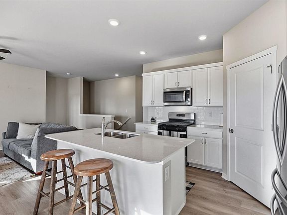Welcome home to this stunning, like new, 4-bedroom, 3-bath walkout ranch that combines modern comfort with timeless style. Perfect for families, this home features an open, bright floor plan filled with natural light throughout. The gorgeous kitchen boasts quartz countertops, a spacious breakfast bar, and ample cabinetry—ideal for everyday living or entertaining. The open layout flows seamlessly into the dining and living areas, creating a warm and inviting space. The primary suite offers a relaxing retreat with a tiled shower surround and a walk-in closet. The walkout lower level provides additional living space—perfect for a family room, home office, or guest suite. Step outside to enjoy both a patio off the back, and deck overlooking the large yard, perfect for play or outdoor gatherings. A convenient 2-car garage completes this like-new home. Bright, modern, and move-in ready—this beautiful ranch offers the perfect blend of style, comfort, and space for family living in a great location!