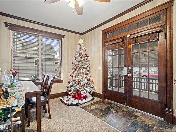 This well maintained 4 bed 2 full bath home features a covered porch, original woodwork, vaulted ceilings, new carpet and hard flooring, new window treatments, lighting fixtures, kitchen backsplash, fenced in backyard, and 2 car detached garage. The dry basement provides lots of extra storage space. Homes sold as is. No known defects per seller.