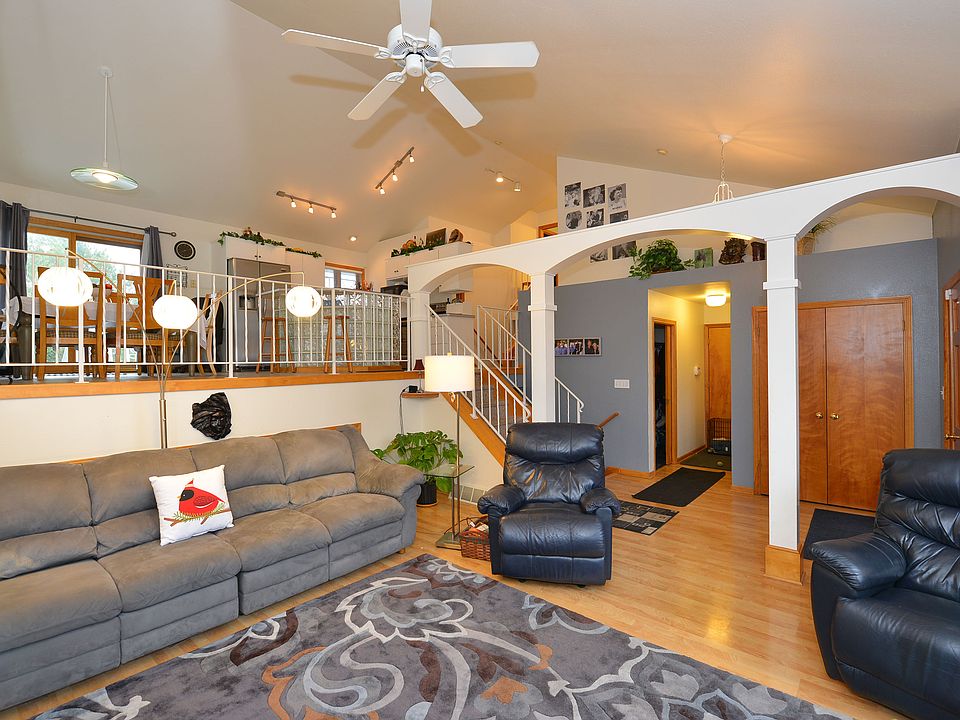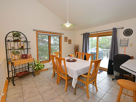Upscale open concept Slinger condo awaits a new owner that wants to entertain! Spacious living room with gas fireplace & unique windows. Beautiful, updated kitchen with custom island, granite counter tops, sleek cabinets & lots of natural light. Patio doors off dining area lead to huge deck overlooking nice sized yard. Master bedroom with patio doors to upper deck, his & her closets, jetted tub & vaulted ceiling. Lower level finished rec room with wall of windows is ready for your next Packer Party! Along with easy access to Hwy 41, this home is walking distance to schools, parks and more! Call today and let's start packing!