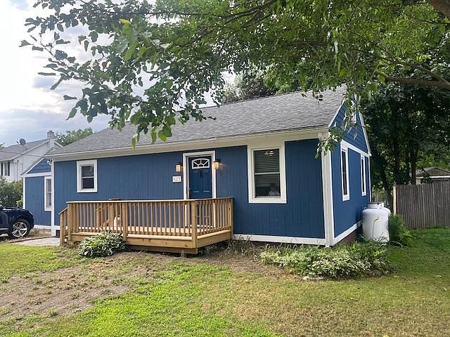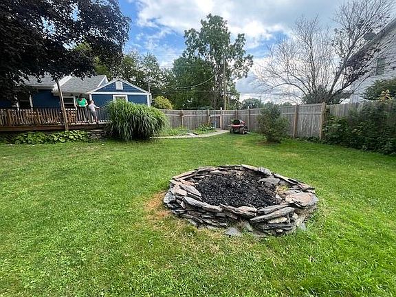 Backyard plantingsFront porchAdjoining deckRoom in basement