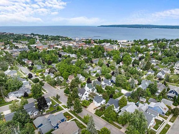 Fantastically unique home and property walking distance to Petoskey's Gaslight District, 6 different schools, North Central Michigan College, the Winter Sports Park, and of course, Petoskey's primary asset, the sun-drenched shores of Beautiful Lake Michigan. This 4-bedroom 2-bath home has been meticulously maintained and features a main floor bedroom and bathroom, 3 bedrooms up, including a dramatic vaulted ceiling primary suite/bunk room, and the most unbelievable 750 square foot garage that includes an extra deep stall with a 12-foot door for watercraft or RV! Add to this a fenced, sunny backyard with a wide variety of mature annuals, hydrangeas, and easy maintenance hardscape and landscape, and you have the perfect in-town yard for pets or kids, in a premier location. There are lots of cool details inside, including gorgeous hardwood floors, great main floor ceiling heights, an original giant pocket door, a cozy little dining area, stone countertops, updated windows and window treatments, and so much more. This is what downtown living is all about: it's light and bright, and there's room for everyone across 2 floors and outside, and a garage this size has potential for whatever your needs/dreams are. So come see what many year-round families, retirees, and Resorters have already figured out: downtown living in the picturesque town of Petoskey is the first stop if you are looking for a home that can increase in value while at the same time provide 4 seasons of fun and convenience, This updated house lives larger than many of its contemporaries and the lot and location are a 10. Contact today for a private tour.