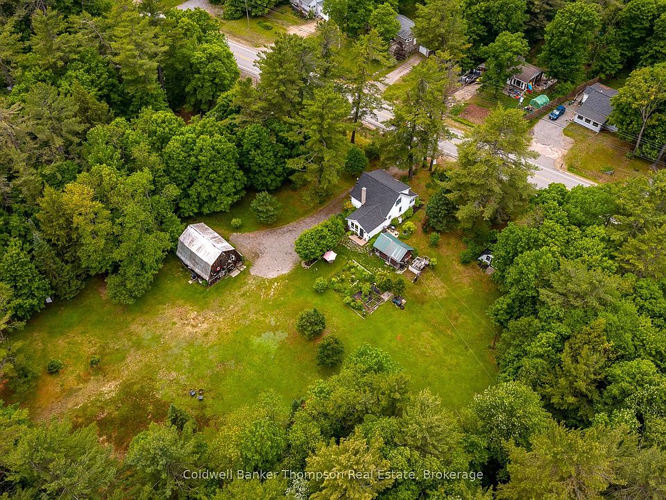 Set on more than 20 acres of exceptional land, this property offers the kind of space, privacy, & natural beauty that rarely comes to market. The acreage is a standout feature, an ideal mix of open areas & mature forest, complete with a network of well-maintained trails that make it easy to explore on foot, ATV, or snowshoes. Whether you're looking for a place to enjoy the outdoors, start a hobby farm, or simply stretch out & enjoy the quiet, this land delivers both quality & usability. The home is surrounded by established gardens & a level clearing that's perfect for outdoor gatherings, kids games, or future plans. A classic barn brings character & storage options, while the detached garage with a loft space above offers flexibility for projects, equipment, or studio use. A potting shed rounds out the package for anyone who enjoys spending time in the garden. Inside the 1.5-storey home, you'll find a layout thats practical & inviting. The kitchen opens to the dining room, which offers peaceful views over the property. Just off the kitchen, a wood stove adds warmth & comfort to the heart of the home. There is a living room & a separate sitting room, making sure everyone has space to spread out. A sunroom at the front of the home extends your living space through spring, summer, & fall. The main floor also houses the laundry room & a separate 4-piece bath. Upstairs, there are 4 bedrooms, including a primary suite with its own 4-piece ensuite. The basement is unfinished with a walkout door, offering useful storage. Additional features include a dug well, septic, oil furnace, fibre optic internet, & curbside garbage collection. Located just minutes from public access on Longs Lake & a quick drive to Port Sydney for groceries, gas, the local school, & Mary Lake beach & boat launch. Don't miss this opportunity to enjoy the kind of space & privacy that's becoming increasingly rare.