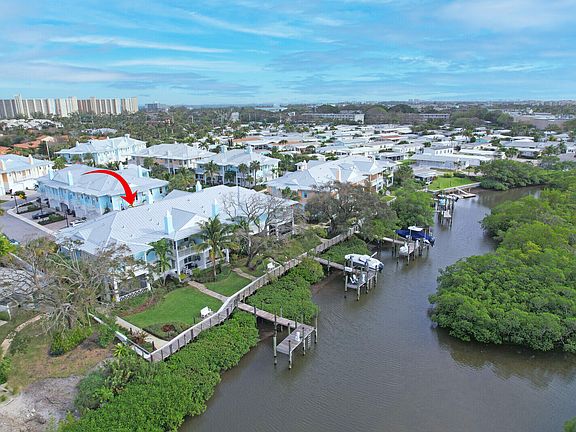 Welcome to Inlet Waters, an exclusive enclave of 33 Key West style townhomes with a prime intracoastal waterfront location nestled within the bustling Inlet Village just south of the Jupiter Inlet. This exquisite home's kitchen & living area have recently been completely renovated with high-end luxury finishes. The kitchen is the heart of the home and boasts brand new cabinetry with customized paneled appliances, a large center island, custom vent hood, floating shelves and stunning quartz countertops. The Fisher & Paykel appliances include a 5 burner induction range, 2 drawer dishwashers, and a drawer microwave. The drawer dishwashers & refrigerator are discreetly paneled elevating the kitchen's design. A custom bar area is adjacent to the kitchen & living room and offers a wine refrigerator, plenty of storage for beverage accessories and a wall-mounted built-in coffee system. A coffered ceiling with sleek contemporary trim molding surrounds the great room. The custom designed media wall offers floating shelves & lighting to showcase your treasures, a linear fireplace and additional cabinetry storage. Hardwood floors, plantation shutters and stylish light fixtures flow throughout the home. Gather with friends & family in the dining area with built-in banquette seating and views of the intracoastal. Speaking of views...relish the tranquil water and preserve views from the patio with 2 motorized retractable screens and the upper balcony off the primary bedroom. Sunsets are absolutely glorious from these special spots! Stroll along the Inlet Waters boardwalk leading to the common dock, another fabulous amenity this community offers. The floor plan offers multiple outdoor living areas, 3 upstairs bedrooms, an upstairs laundry room, a convenient powder room on the first floor and a 2 car garage. The primary bedroom has a private balcony overlooking the intracoastal, 2 walk-in closets with built-in storage, and a lovely spa-like bath with dual vanities, quartz countertops and a spacious walk-in shower with frameless glass enclosure. The 2 guest rooms are welcoming and comfortable. One guest room has a private balcony as an additional outdoor enjoyment area. A convenient community pool & spa are steps away and a wonderful place to meet neighbors or host your guests. The residents of Inlet Waters are lucky enough to be surrounded by many of the top restaurants and shops within walking distance near Love Street. Pristine beaches & golf courses are minutes away. This home truly offers a unique & special lifestyle. Live your best life here!