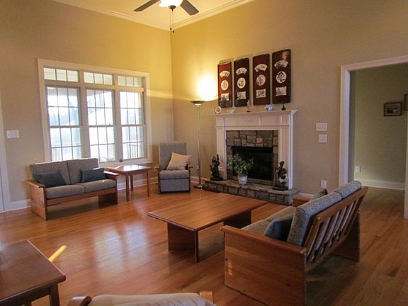 Situated on cul-de-sac lot! 4 bedroom, 3.5 baths plus bonus room. Open floor plan with cathedral ceilings, hardwood floors, and stone gas log fireplace in greatroom. Eat-in kitchen with solid surface countertops, tile backsplash, under counter lighting, stainless appliances, pantry, desk, and custom cabinets. Formal dining room with accent lighting, hardwood floors with accent in-lays, and arched window. Guest rooms on main level with Jack & Jill Bath. Master suite with dome trey ceiling with faux finish and accent lighting. Upstairs offers guest bedroom, full bath, bonus room, and exceptional storage space. 17x17 screened porch overlooks large cul-de-sac lot with mature trees at back of lot line. Appraisal on file.