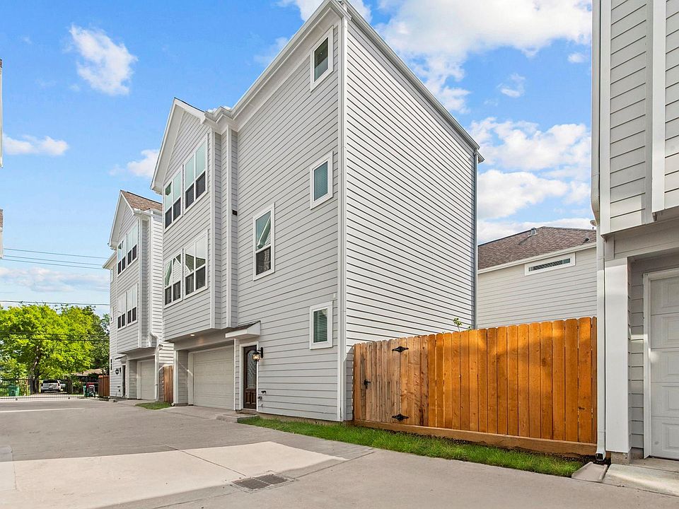 Welcome to this gorgeous 3-story, 3 BR, 3.5 bath, 2 car garage home just steps from the Houston Farmers Market, Whole Foods, HEB, pubs, dining, & everything the Houston Heights has to offer. Nestled in a gated community w/ extra street parking outside the gates, this home combines comfort, style, & convenience-plus a quick commute to Downtown. Inside, you'll find a bright, open floor plan w/ stunning hardwood floors (no carpet!), designer fixtures & an airy neutral palette filled w/ natural light. 1st floor offers a private secondary bedroom w/ an ensuite bath-perfect for guests or home office-plus garage access, storage & direct entry to fenced backyard. 2nd floor is built for entertaining w/ large chef's kitchen, spacious dining area, expansive living room, & powder bath. Upstairs, the primary suite is a true retreat w/ a luxurious bath, while another secondary bedroom w/ ensuite bath completes the top floor. Backyard includes pavers for your furniture/grill & grass for pets or play.
