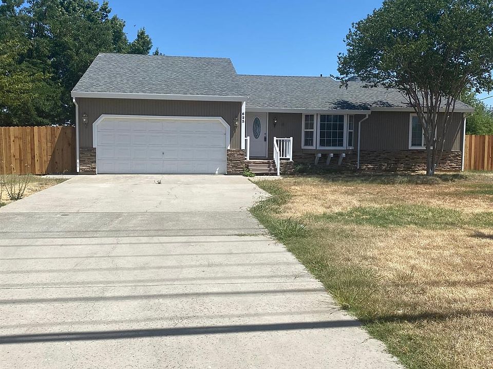 Cute,updated ranchette sits on over 1/2 acre,with plenty of room to add a pool, garden, vineyard, kids play structure and more. Minutes to I-5, CA-99, airport,retail and restaurants. Kitchen has quartz counters, s/s appliances & white cabinets. Both bathrooms have new vanities, lights, beautifully tiled shower/tub and tile flooring. Formal living room and spacious kitchen overlooks the family room.Master bedroom has 2 built-in armoire's and lovely bench seat with storage. Finished garage. Dual pane windows and laminate flooring throughout; carpet in beds 2 & 3.
