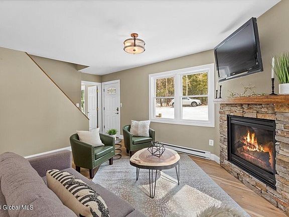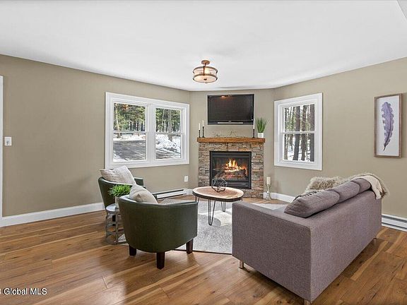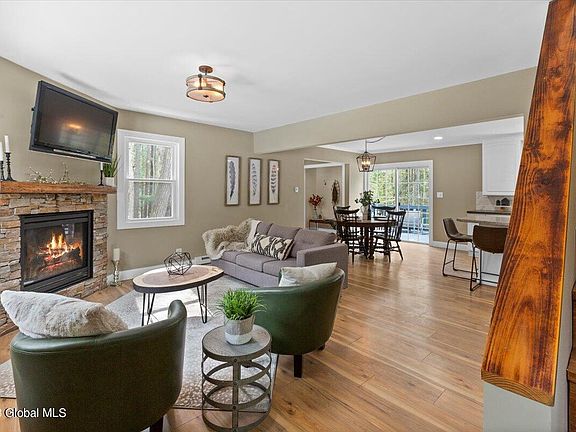 Beautifully updated 4 bedroom/2.5 bath Cape Cod on a private lot surrounded by nature in Averill Park School District. This home is light, bright and open on the inside. Enjoy its open main floor living area with new floors, windows and cozy gas fireplace. The deck off the dining and kitchen area provides the perfect place to entertain. Also on the first floor is a spacious primary ensuite. 2 large bedrooms both with vaulted ceilings as well as full bath make up the second floor. The finished walk out basement provides an additional bedroom as well as lots of extra space for an office, kids play room or home gym. The additional woodstove downstairs makes this the perfect place to snuggle up. This spacious home is close to town but private and serene!