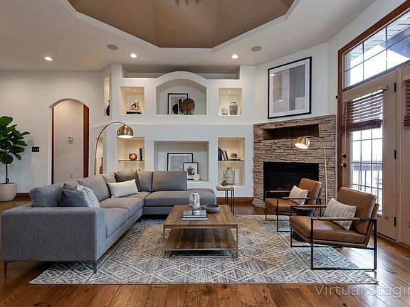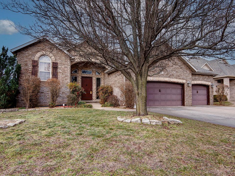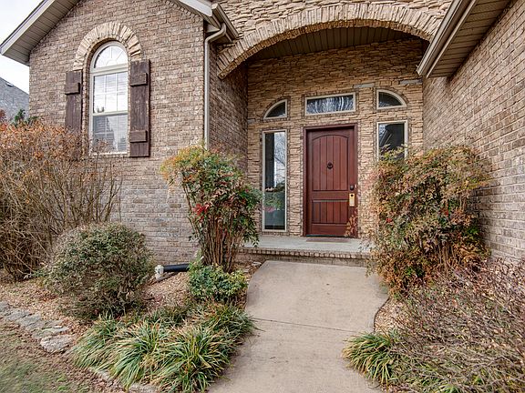 This impressive walkout basement home has custom features throughout! From the moment you walk in . . . gorgeous hand scrapped wood floors, tall ceilings & raised ceiling treatments w/ beautiful fixtures, custom shelves w/ lighting, stacked stone gas fireplace, arched doorways, textured walls, surround sound, open floor plan to kitchen w/ tile countertops, 5 burner gas stove, double stainless convection ovens, pot filler, custom cabinets, master suite includes large walk in tile shower, 2 more bedrooms up w/ high ceilings, upgraded bowl sink in main bath. Down stairs you will find wet bar, family room, addl playroom, 2 more bedrooms, wonderful backyard complete w/fire pit, privacy fence, sprinkler system, front exterior has impressive stacked stone entry. This home is a must see with a great heart of Nixa location in The Springs subdivision, close to parks and schools! Freshly painted and new carpet, makes this charmer truly turnkey ready!