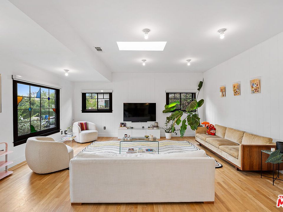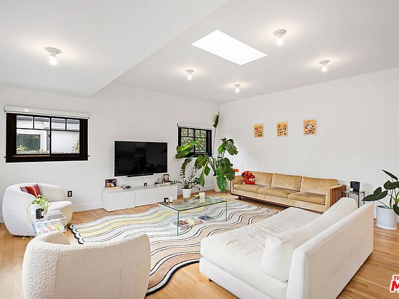 This beautifully reimagined Spanish effortlessly fuses timeless charm, classic architecture, and elevated modern living. With a 3 bed, 3 bath main house + a converted garage with an additional full bath, this character-rich home delivers everything from soaring skylights to abundant natural light, vintage stained-glass windows and an airy open layout. At the heart of the home sits a spacious cook's kitchen, thoughtfully designed for both form and function. It features a large center island, Carrara marble countertops, handcrafted tile, and sleek custom cabinetry ideal for casual dining or upscale dinner parties. The primary suite offers a peaceful haven and is fit with a walk-in closet, a spa-like en-suite bath, and bi-folding doors showcasing calming views and access to the manicured backyard and pool. A private and lush backyard invites seamless indoor-outdoor living, equipped with a grassy sitting area, patio and pool. The bonus converted detached garage provides its own functional living space, a bedroom and full bathroom, adding incredible flexibility perfect as a guest suite, creative studio, or the ultimate poolside lounge. Tucked away on a quiet street just moments from the best of Melrose and Beverly, this one hits every note: timeless, stylish, and completely dialed in.
