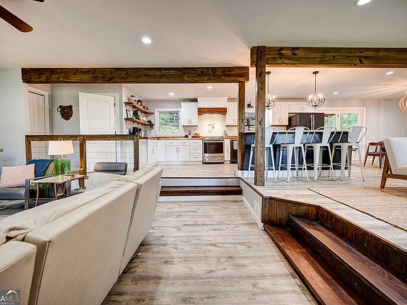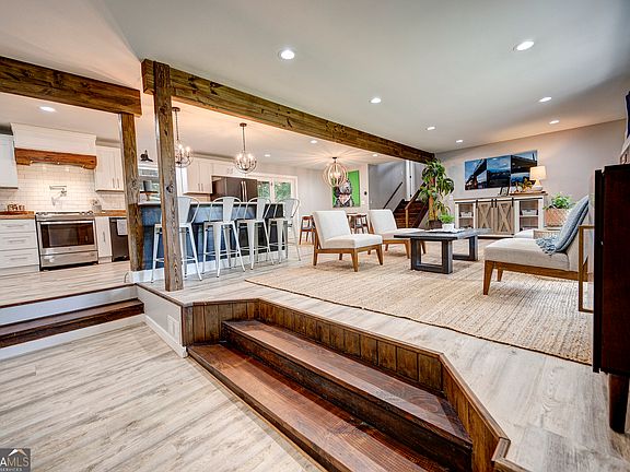 THE MAGNIFICENT MID-CENTURY MODERN WITH SEAMLESS INDOOR AND OUTDOOR LIVING SPACES! Conveniently located just one block from Curtis Parkway sits this EXQUISITE, CONTEMPORARY MASTERPIECE, perfectly perched upon its SPACIOUS, CORNER LOT, which is positioned in the county, but adjacent to city property. Stately lion statuaries atop BRICK COLUMNS welcome you into the driveway, where you are instantly enamored by the property's UNPARALLELED CURB APPEAL. The 4-SIDED BRICK EXTERIOR is met with ARCHITECTURAL-SHINGLED ROOFING, and the TASTEFUL LANDSCAPE accentuates the design and appeal of the estate. From the far east side of the home, under handsome COVERED FRONT PORCH with CATHEDRAL TONGUE-AND-GROOVE CEILINGS, guests embark into the opulent, SUNKEN LIVING ROOM. A romantic, BRICK FIREPLACE is the focal point of the space, which adjoins the kitchen, dining, and gathering/keeping room in a flowing, OPEN-CONCEPT FOOTPRINT. A POWDER ROOM for guest use is strategically located for convenience. The MAGAZINE-WORTHY KITCHEN is any serious cook's desire, and boasts: White shaker cabinetry with sleek hardware, met with custom WOODEN COUNTERS, and lustrous SUBWAY TILE; STAINLESS APPLIANCE PACKAGE, complete with POT FILLER, GAS STOVE, and aproned FARMHOUSE SINK; and Eye-catching BREAKFAST BAR (which doubles as a PREP ISLAND) in a contrasting hue. Travel down the stairs on the way to the Owner's Retreat to the SPACIOUS FLEX ROOM, which is currently being utilized as a MUSIC STUDIO for a professional artist. The home's 3rd wooden-door front entry is located in this space, which could be utilized for a plethora of possibilities, including a HOME OFFICE, or 5TH BEDROOM. Its EXPOSED DUCTWORK adds to the CHARACTER AND CHARM of the space, and includes an ADJOINING FULL BATH and SIZABLE LAUNDRY, accessed by SLIDING BARN DOOR. Two more stairs lead you to the OWNER'S RETREAT, which is the ultimate hideaway for some rest, relaxation, and a little pampering at the end of a long day. Its SPACIOUS BEDROOM with vigorous CONCRETE FLOORING is towered by rich, TONGUE-AND-GROOVE CEILINGS, and features an aesthetic BRICK ACCENT WALL. Its SPECTACULAR PRIVATE ENSUITE with UNIQUE DESIGN offers an unforgettable experience. COLOSSAL CONCRETE SOAKING TUB is accentuated with gleaming subway tile and RAIN SHOWER HEAD SYSTEM. DOUBLE VANITIES are deliberately placed to glorify the space, and are complemented by modern pendant lighting above. A generous WALK-IN WARDROBE to house all your fashions graciously completes the retreat. The UPPER LEVEL features THREE GENEROUSLY-SIZED BEDROOMS, which share a full bath with tub/shower combo. Arguably the most impressive feature of the property is the OUTDOOR OASIS of the backyard, providing a PRIVATE and PICTURE-PERFECT BACKDROP for YEAR-ROUND ENTERTAINING. The COVERED BACK PORCH is adjoined by an OPEN PATIO, as well as a DESIGNATED SPACE FOR a soothing HOT TUB. To the other side, a charming walkway leads to the LUXURY KOI POND, which was thoughtfully crafted to be the centerpiece of the outdoor oasis. The crystal clear water and cascading waterfall offers a peaceful habitat for vibrant koi while enhancing the property's natural charm. ADDITIONAL PROPERTY HIGHLIGHTS INCLUDE: 2 HVAC UNITS (One for bottom and top levels and one for middle level); SOLID SURFACE FLOORING THROUGHOUT; ANDERSEN CRANK CASEMENT WINDOWS; NO HOA; and FENCED BACKYARD. Enjoy tremendous privacy as you drift away from the hustle and bustle, while forgetting that you are LESS THAN A MILE FROM I-75 AND HIGHWAY 53, offering dining and shopping options galore. Do not miss the opportunity to own this ONE-OF-A-KIND, TROPHY ESTATE and call 623 Peters Street HOME!