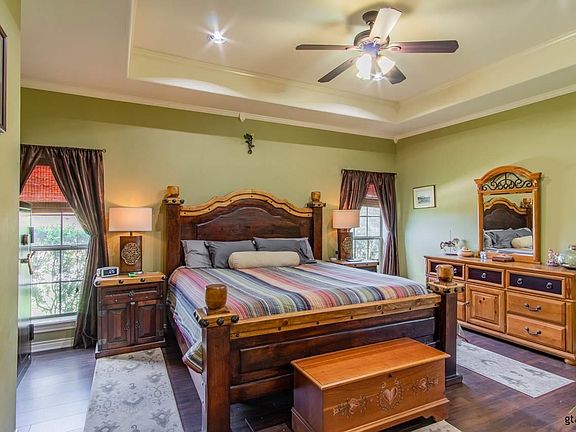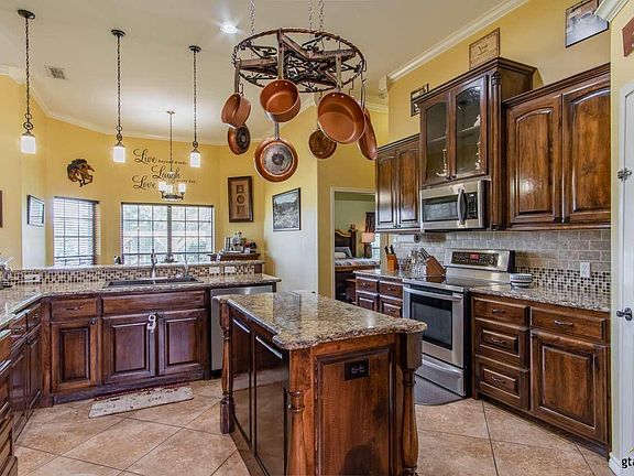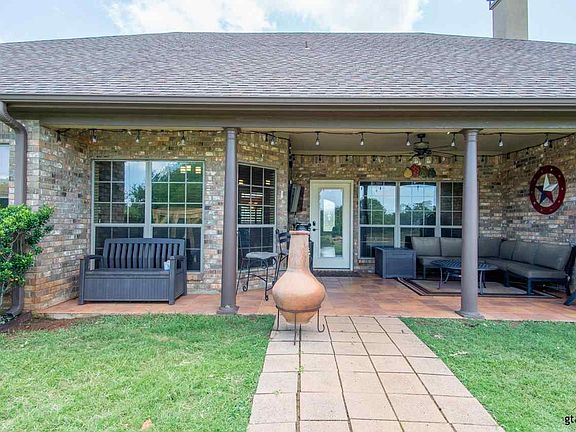 Beautiful french doors welcome you into this gorgeous 4/3 home that sits on 4+ acres in a private subdivision close to Lake Cherokee. Notice the amazing vaulted ceilings & crown molding. A great living room to entertain and enjoy the WBFP with custom built-ins and a view of the huge backyard. Gorgeous kitchen w/granite counter tops, stainless appliances, plenty of cabinets & storage, large pantry, breakfast nook with a view. Master bedroom split with view of backyard & master bath with large Jacuzzi tub. Guest bedroom split with 2 full size guest bathrooms. Barn with tack room or can use as a workshop, fence across back yard installed for horses but can be removed. Relax on the covered back patio while enjoying the incredible view & detached patio for additional outdoor living. Lights & ceiling fans in living room & master bedroom can be controlled with Google. You don't want to miss this one! Call to request a showing today!