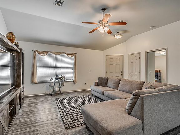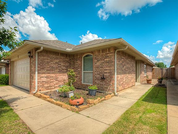 Tucked away on a quiet cul-de-sac in a prime area of Moore, this beautifully updated 3-bedroom, 2-bathroom home is full of warmth, charm, and everyday comfort—ready for its next chapter. Fresh paint and new wood-look flooring flow throughout the home, creating a clean, cohesive feel from the moment you walk in. The spacious living room features tall ceilings and abundant natural light, while the adjacent kitchen offers generous counter space, ample cabinetry, a large pantry, and a brand-new garbage disposal—perfect for both busy mornings and relaxed evenings. The oversized front bedroom is ideal for guests or a home office, while the private primary suite at the back of the home offers a walk-in closet and a full en-suite bath with a tub/shower combo. Outside, a covered patio provides the perfect place to enjoy peaceful mornings or unwind in the evening. Recent updates include a new roof (2023) and hot water heater (2024), offering peace of mind for years to come. Just steps from a fish-stocked neighborhood pond and minutes from shopping, dining, and more—this Moore gem is ideal for first-time buyers, downsizers, or investors alike. Come see it today and start your next chapter here!