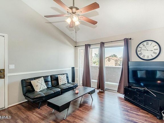 Welcome home to this charming condo nestled in a beautifully maintained community—an excellent opportunity for investors or homeowners alike! Featuring a 2023 washer and dryer, recently replaced AC, and updated water heater, this property is turnkey ready for immediate move-in or rental. The open layout and vaulted ceilings create a spacious feel, while the private balcony adds outdoor enjoyment and provides an additional storage. Ideal for homeowners or renters due to its prime location near the 101/60 interchange, Costco, community pools, and lush green spaces. Don't miss this chance for effortless rental income or your own cozy home!