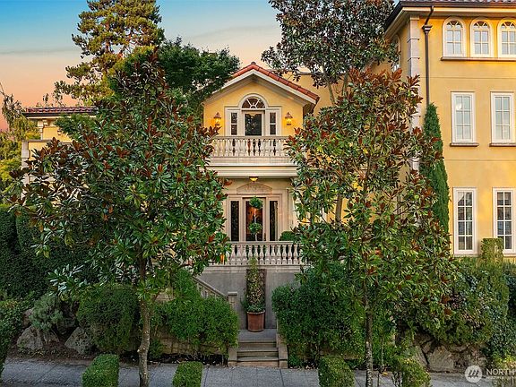 A rare offering with a coveted corner-lot setting on Queen Anne hill’s iconic West Highland Drive, this extraordinary Italianate-style mansion harmoniously presents modern luxury living with Old World elegance. Extensively remodeled in 2003, this exquisite property has been lovingly maintained & improved to perfection. Step through the ornate, wrought-iron gated entry into enchanting courtyards, balustrade-lined terraces & captivating mature landscaping. Italian renaissance-inspired interiors feature grand entertaining spaces, soaring ceilings, Venetian plaster walls, Fortuny fixtures & radiant-heated marble flooring. Rooftop deck w/ spectacular sweeping view of Seattle skyline, Mt. Rainier & Elliott Bay. Elevator, A/C, EV charging & more!