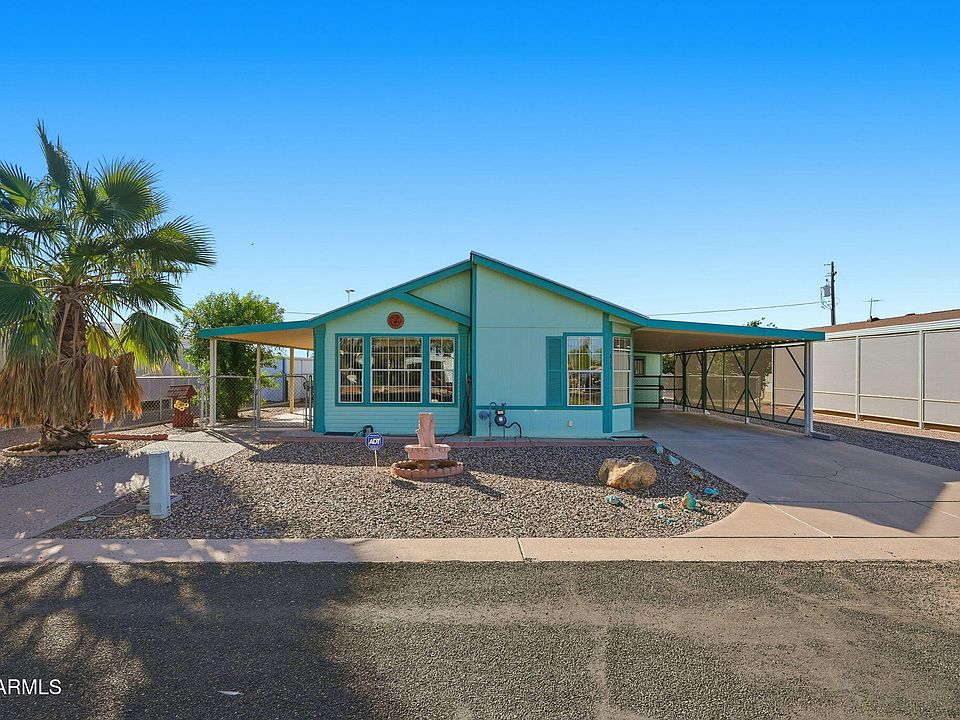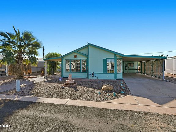 Welcome home to this charming ground set FURNISHED manufactured home located on a quiet cul-de-sac street with NO HOA! Own your land and enjoy the freedom this property offers. The interior has a spacious living room, separate dining area, and an open kitchen with breakfast bar. You'll love the luxury vinyl plank flooring and the convenience of the inside laundry room. The primary suite is complete with a walk-in closet and shower. Outside, you'll find a covered carport, two workshops/storage sheds, and a large covered back patio overlooking a beautiful, fenced yard complete with mature fruit trees.