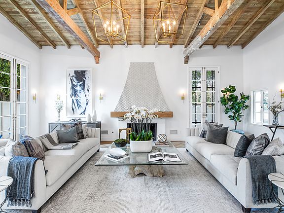 Set behind gates in the highly coveted Beverly Hills flats, this ultra-private and custom Spanish Estate showcases ~6,600 square feet of unparalleled luxury and exquisite design. Beyond the private motor court, the dramatic entrance welcomes you with soaring vaulted ceilings, a sweeping staircase, and impressive wood beams. The 2-story home offers 6 bedrooms, 10 bathrooms, several immaculate living spaces and a separate detached guest casita. The impressive chef's kitchen is outfitted with top-of-the-line appliances and features a grand 14-foot center island that is open to the formal dining area. The main level is encased by both French floor-to-ceiling doors and glass pocketed doors allowing for seamless indoor/outdoor living. Surrounding the property in its entirety, the stunning manicured grounds host a fenced-in salt system pool, spa, built-in BBQ, and vegetable gardens. On the second level, live lavishly in the primary bedroom suite with a beautiful fireplace, his/her marble bath
