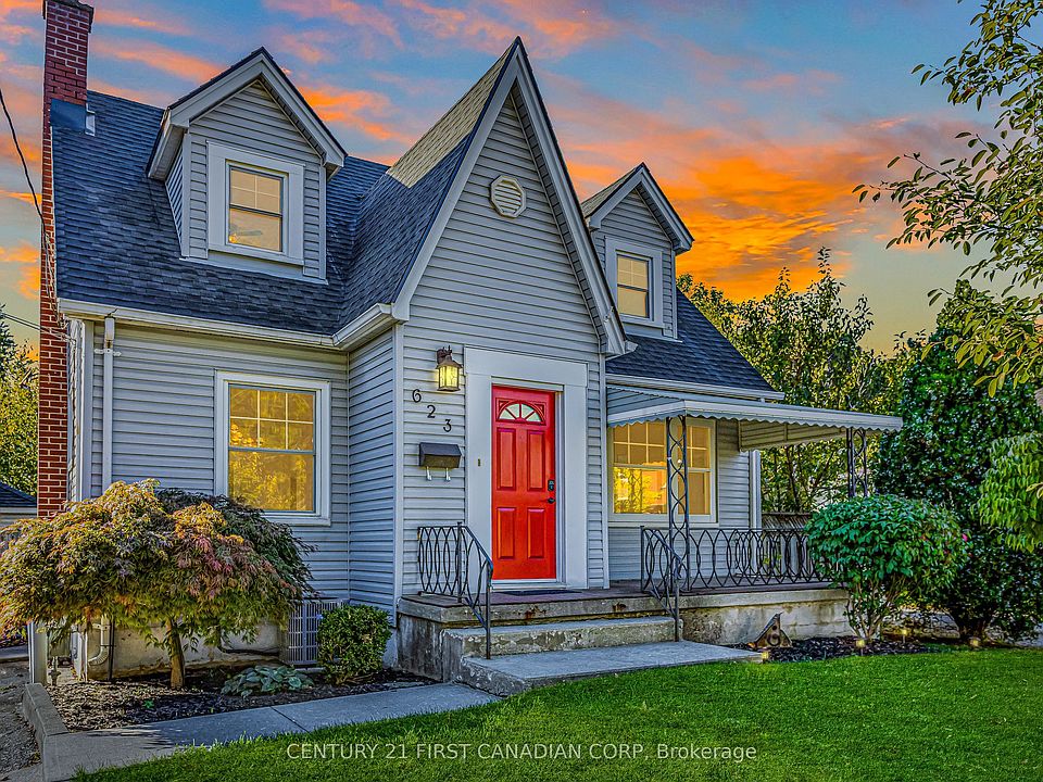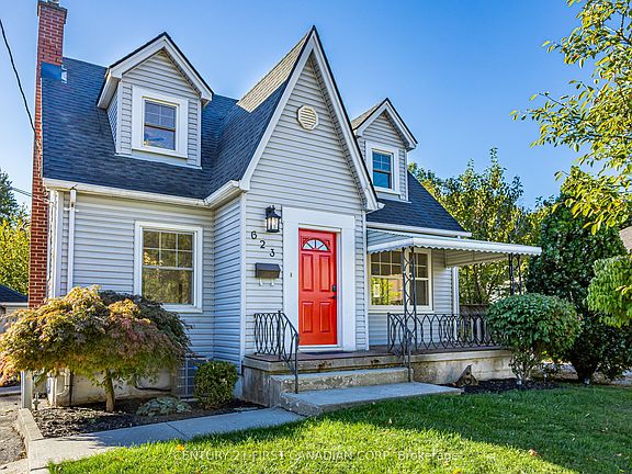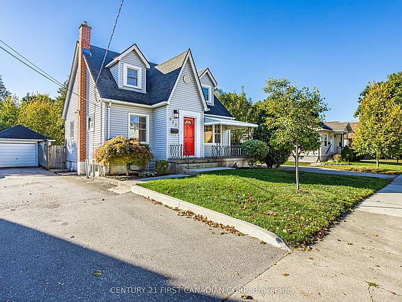 Opportunity Awaits on this Charming Cape Cod with **IN-LAW SUITE**! Welcome to this picture-perfect home, tucked away on a quiet, tree-lined, dead-end street just steps from Carling Park and the Community Centre. With incredible curb appeal and a welcoming covered front porch, this home blends classic charm with modern updates in all the right places. Step inside and you'll immediately notice the abundance of natural light, original hardwood flooring, and beautiful glass doors that maintain the homes character. The spacious living room opens through an oversized archway into the bright dining area, creating an inviting flow for family gatherings. The updated eat-in kitchen features stainless steel appliances, new vinyl flooring, and plenty of room to cook and connect. The main floor bedroom offers added convenience, complete with a private 2-piece ensuite, ideal for guests or a home office. Upstairs, you'll find a massive primary suite with a walk-in closet large enough to impress, along with another well-sized bedroom and a 4-piece main bath. The finished lower level with a separate entrance adds even more versatility, featuring a full kitchen, living area, and 3-piece bath-perfect for a granny suite, bachelor setup, or mortgage helper. Additional storage and a dedicated laundry area complete the lower level space. Step outside to enjoy the fully fenced backyard, a generous space for kids to play or to host summer BBQs on your new back deck and an oversized single car, detached garage with hydro & ample parking. Recent updates include: Roof (2023), Furnace (2022), A/C (2025), most windows, professional painted throughout, new deck, light fixtures, and more - the hard work has been done for you! Affordable, updated, and full of charm-this home proves you can own a beautiful property without compromise. Floor Plans Available. Video Here: https://youtu.be/dZX5hnDCFMQ