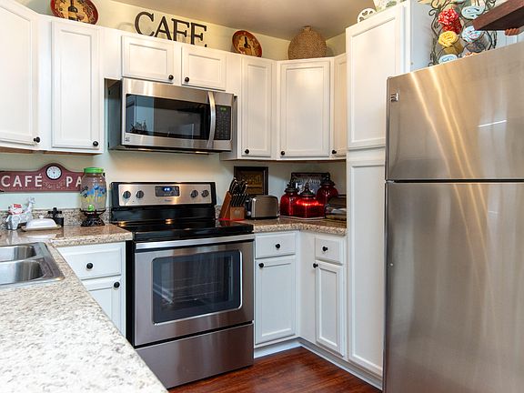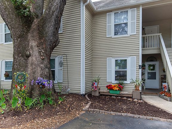 Quiet, cozy neighborhood! Beautiful lush oak trees and look at this price! Owner has impeccably cared for and renovated this home.Owner spent approximately $28,000 on renovations that include below. Also note other handy information: - Large pantry. - Electrical: All new receptacles/plugs (GFI), lighting, ceiling fans, lighting outside (back patio light has 2 plugs), front porch receptacle added, laundry room light added. New breaker box door. - All freshly painted throughout including sunroom, back patio, exterior sunroom window wall, and patio divider wall. Siding recently replaced on patio/bldg. walls - New sheetrock walls & ceiling in laundry room and storage room off sunroom. Washer hose/valve box installed. New cabinets installed in laundry room above W/D. Installed receptacle switch for new ceiling light (replacing pull string light). Clothes hanging rack & shelf will stay. - Flat ceiling throughout w/exception of two bedrooms which are blown, but were painted. New vents in all ceilings. - New double hung hurricane strength windows and patio doors - New water heater (approximately 3 years old) - DIY coat & shoe rack at front door entry - Bathroom: new sheetrock, vanity, doors, lighting, freshly painted & trim. Tub refinished. - Kitchen: New floor throughout including laundry room. New cabinets. USB charged light bar (sensor) above sink in kitchen will stay. - Sunroom: 10' 6" X 7' 6" - roman shade will stay along with extra cabinet. Sunroom is not heated and cooled but stays comfortable year round like the rest of the home. - MBR - Newly painted. TV wall mount stays. Wiring inside the wall - no cords. USB charged lights w/remote installed inside both closets. - Fireplace: Wood burning. Inspected and cleaned. Used rarely. Exterior of fireplace replaced by HOA approximately 6 years ago. - Floors: * Kitchen/Laundry: LVP (Rustic Heart Pine 25 year) and front entry door has laminate flooring * Bathroom: Tile * Carpet throughout living room, bedrooms, and sunroom. - A/C - original not sure age. Serviced around end of 2023. No known operating issues. Heats & cools well. - Some Landscaping exterior: all landscaping items (excepts pots, statuary, bird feeder, etc.) and fence off patio stays. HOA responsible for upkeep of landscaping service. - ADT Security System installed: on all windows, doors, and shatter proof detector on LR ceiling - Wired for Xfinity Internet/Cable - Dedicated water hose spigot on front of unit - downstairs unit - Electric Avg $85.00 monthly. Water Avg $65 monthly - Concrete Patio and Front Porch Floors painted approximately 3 years ago. - Dumpster available on April Pine short walk from unit. Recycling bins provided as well. - Pond located in the middle of the property - No assigned parking. Each resident gets two spaces within the proximity of their unit, but its more first come first serve. Others are respectful to where those of us long term owners have always parked. Owner parks right in front of her unit. - HOA provides termite bond. Owners are responsible for their own pest control. Fee covers all of your insurance except an HO6 policy (for sheetrock and furnishings), termite bond, exterior maintenance, roof, and landscaping, pool, and tennis courts.