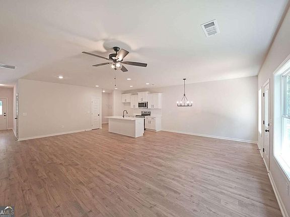 New construction by Rivermont Homes in Julian Ridge! Fabulous location, fantastic Forsyth County schools, close to Lake Lanier, and convenient to all the shopping Dawsonville and Gainesville have to offer!!! The Oconee is a 3 bedroom 2 bath RANCH plan on BASEMENT with finished BATH AND REC ROOM!!! this home is situated on .59 acres with a private wooded view. Upon entering this home you are met with a beautiful open area, the foyer leads to the family room and kitchen area perfect for entertaining! A bright well lit white kitchen featuring QUARTZ countertops, tons of cabinets, and stainless steel appliances. The spacious master suite and the luxurious bath has a double vanity with quartz countertops and large shower with bench. The 2 guest rooms have a shared hall bath with tub/shower combo and vanity with quartz countertops. Basement has finished rec room and full bath! This home is under construction and will be complete for NOVEMBER 2025 closing! STOCK PHOTOS of finished floor plan, may have different finishes and colors.