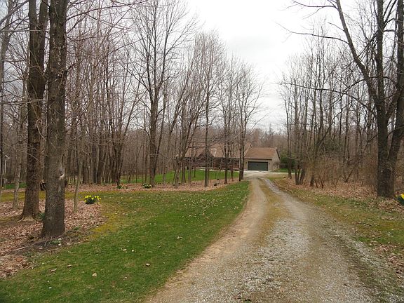 Custom QUALITY built ranch on fabulous wooded lot sitting 300 ft off road! Large entry foyer w/high windows leads to wide open spaces including a vaulted 18'9x25'4 Great Rm w/stone-to-ceiling WBFP & barn beamed mantle. Kitchen with eating bar opens to dining room, great room, and a new 16x20 GAME Room with vaulted ceilings and walls of windows! French doors to 21' master bedroom. Solid oak woodwork throughout in beautiful condition! Stainless Steel appliances. 22x28 garage with additional overhead door leading to back. Enjoy nature, deer, woods from the lg private patio, and the 55' covered front porch. FULL poured bsmt, high ceilings, easy to finish. Meticulously maintained and customized by original owner. Pleated blinds, Gutterguards, Fortin Ironworks fixtures, American Heritage Built