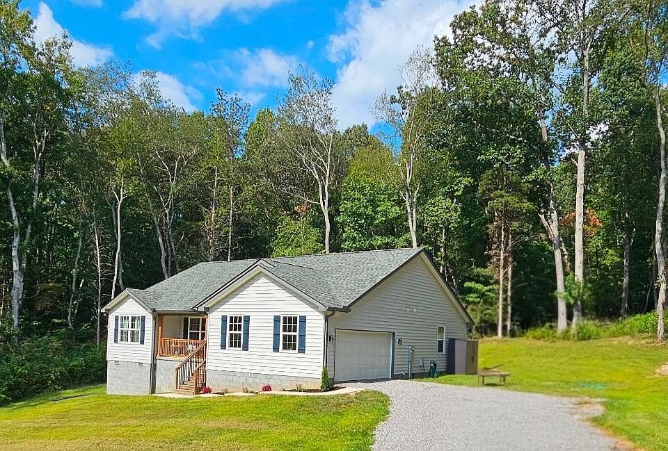 Welcome to your dream home nestled in a peaceful country setting, just minutes from town! This beautifully crafted ranch-style residence offers the perfect blend of modern luxury and serene living. Built in 2023, the home has 1779 square feet and sits on 5.59 acres of lush, wooded land, providing privacy and natural beauty.