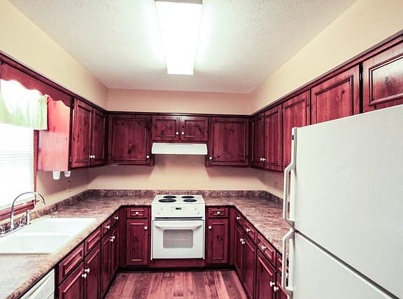 Home features brick fireplace in livingroom, Kitchen with lots of cabinets and all appliances. Breakfast bar in kitchen viewing the dining area. Nice carpet throughout, wood in kitchen area, Freshly painted neutral color throughout. 2 large bathrooms and 2 large bedrooms on each side for a total of 4 bedrooms and 4 baths