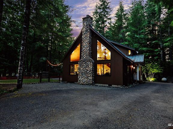NW Mountain Chalet in Crystal River Ranch, 20 minutes to ski Crystal Mt or hike Mt Rainier. 1,810 SF on just over 1/4 acre lot features hardwood & slate floors, vaulted wood-lined ceilings, wood fireplace w/slate hearth that adds warmth to this well-maintained cabin. Elegant interior woodwork/trim and raised panel doors. Chef's kitchen w/granite counters, SS appliances. Upper level master suite w/private bath and walk-in closet. Loft area upstairs for guests/office. Main level bedroom & full bath. Mud room entry w/ W/D, utility sink & space to dry gear after a day on the slopes. Generator included. Covered deck leads to fenced back yard & fire pit. Great location on quiet street-backs up to greenbelt. Hurry this one won't last!!!