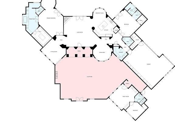 An oversized garage includes built-in storage, an extended third bay, and a convenient utility room.