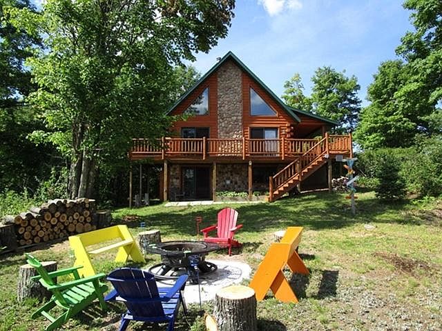 Island living at its finest on the highly sought after 3300-acre Canadian mirrored lake-the gorgeous Gile Flowage! A most amazing property featuring true vast-water views of undeveloped scattered islands & tranquil waters! It offers a nearby main land base for parking & pier access. Jaw dropping island highlights a gorgeous new log-sided dream lodge, filled w/amenities & 180 degree WF view like no other! Attractive covered porch plus a lg deck showcases a panoramic southern view. Dramatic open concept highlights a massive stone FP, towering cathedral knotty pine ceiling, laminate wood flooring & beautiful kitchen w/custom hickory wood cabinets. 2 bd, full ba & spacious loft master BR overlooks the great room. Finished LL rec rm, pool table, bed & bath. Stone exterior accent, high-end solar/battery power, conventional septic & filtered water cistern. Ultimate privacy & comes turnkey-all furnishings, tools, generator, boats are included! PLUS an addn'l island...Own not 1, but 2 islands!