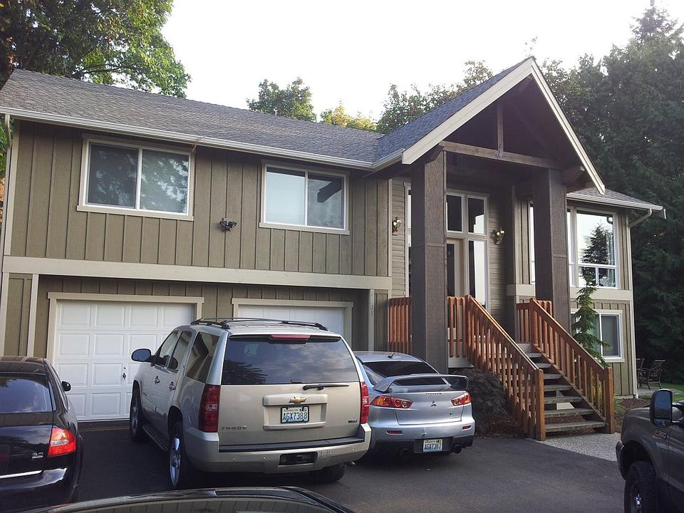 Craftsman quality home (built in 2011) with open concept floor plan featuring living/dining/ kitchen/family area as one room on main floor. There is a family room downstairs, along with bedrooms and baths on every floor. Master bath with tub, shower, double vanity, and walk-in closet. Kitchen has slab counters/ backsplash, appliances, and a granite island eating space. Tile and laminate floors along with carpet, double pane vinyl windows, and a 90% efficiency gas furnace. Laundry room with washer and dryer hook ups on lower level. Garage has a 3rd tandem bay with workspace including cabinets, and an extra storage area. Low maintenance landscaped yard complemented by entry staircase . Located in the award winning Northshore School District, and is close to shopping and recreational areas. *The owner asks for all interested parties to drive by the property prior to inquiry. Please view from the driveway and do not disturb the current tenants.* Tenant is responsible for all utilities. Credit and background check required ($35 per applicant).