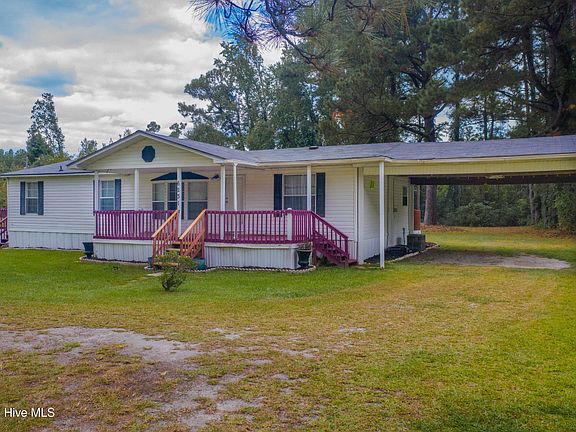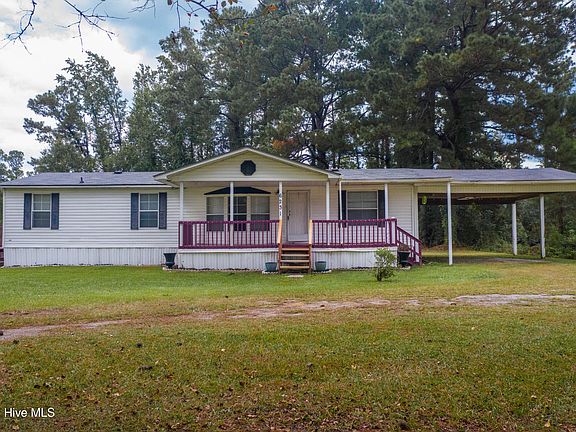 Spacious 3 bedroom, 2 bath double wide on 2.02 acres in the quiet community of Hallsboro. This home features a desirable split floor plan with the primary suite separate from the additional bedrooms for added privacy. The kitchen offers a bar top and combo dining area that flows easily into the living room, creating a comfortable space for everyday living. Step outside to enjoy both a covered front porch and a covered back deck, perfect for relaxing or entertaining in any season.