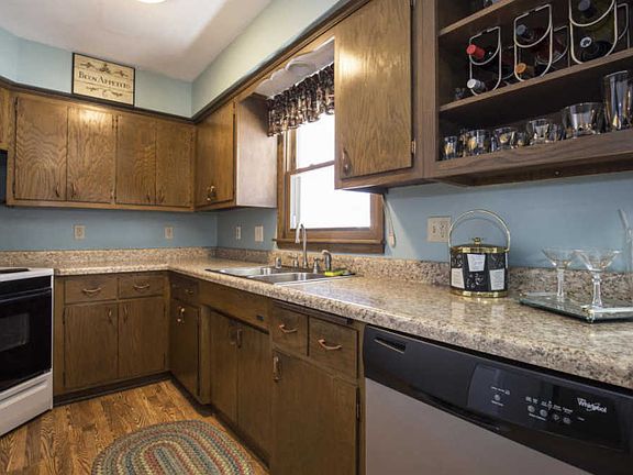 Updated mid-century ranch. Hardwood floors thruout this meticulously maintained home. Kitchen has new flooring, countertops. Bathrooms updated with tile and whirlpool tub. Finished lower level boasts plenty of entertaining space with a built-in wet bar and Gas Fireplace (needs accessories). 4 car garage is also a plus. Outside has numerous perennial gardens with private patio.
