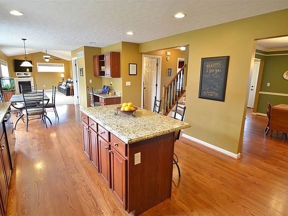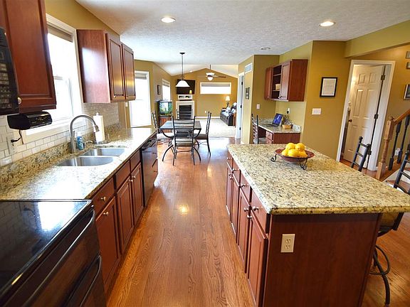 - Kitchen Features: Wood Cabinets, Island, Wood Floors, Pantry, Counter Bar, Marble/Granite/Slate, Planning Desk, Walkout
