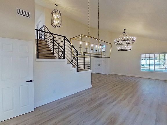 Introducing this fully remodeled 4-bedroom, 3-bath house located in a quiet family friendly community in Orange. This property boasts excellent curb appeal with a large front yard adorned with lush greenery, an expansive driveway, and features an attached 3-car garage. As you step inside, you are greeted by a roomy living area highlighted by stunning floors and beautiful hanging chandeliers. This property boasts an open layout that leads you to the dining area that is ideal for sharing meals with loved ones. The kitchen is a chef's dream, featuring elegant hardwood cabinets, stylish countertops, and a tile backsplash. It comes equipped with high-end appliances, such as a refrigerator, stove/oven, microwave, and dishwasher. This property features a second spacious living space featuring a charming brick fireplace and a built-in bar. The first floor also includes a convenient guest bathroom and a dedicated laundry room with washer and dryer hookups.