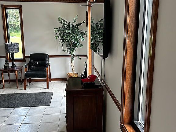 Large 1836 sq ft brick front shop with 504 sq ft of it finished living space in excellent condition. Living area includes large office area, a full bath with shower/tub, kitchenette with double sink and an under the counter refrig. The bedroom could be a second office. The open shop area has concrete floor with large overhead door and an additional side door. Lot size 0.659 acre and located on a main road. Zoned Residential/ Business
