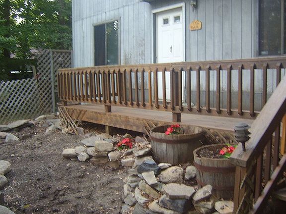 Features:One block from the beach and boat launching siteLevel lot with lots of trees and wrap around deckGarden in the front of the house for flowers and/or vegetables Wheelchair ramp for handicap accessSun Room1st floor: Living roomDinning areaFireplaceKitchen with dual refrigerator 1 bathroom1 bedroom Laundry room/storage room2nd floor: 3 bedrooms1 bathroom Cathedral ceilings. Community: (Free to tenants)Private, gated community just 90 minutes from the GWBSwimming poolsTennis courtsTwo lakes for fishing and swimmingBoat rentalsPets negotiable, First month, Last month rent and one month security plus $175 annual tenant registration fee to move in. Available immediately. Call Jim @ (973)874-6120