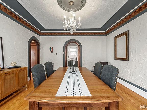 Established in 1924. This architecturally significant DeMun three story walkup penthouse is beautifully preserved with historic charm. It feels like something out of Paris yet is thoughtfully enhanced with modern updates. Natural light fills the living room through stunning arched windows, highlighting the gorgeous barrel ceiling and intricate gas fireplace that serves as the focal point. French doors open to a spacious private terrace, perfect for morning coffee or evening wine. Timeless features include stately arched doorways, stained glass windows, detailed plasterwork, and white oak floors throughout. Recent updates such as newer HVAC with insulated ductwork, an updated electrical panel, and modernized outlets provide efficiency and peace of mind. The renovated kitchen blends style and function with high end appliances, extra deep wood cabinetry, granite countertops, and a cast iron farmhouse sink. The spacious primary bedroom offers double walk in closets and loads of natural light, while the second bedroom is generously sized. The updated beautifully tiled full bath adds to the move in ready appeal. Additional highlights include a basement storage area with built in shelving and a parking pad space. Ideally located in the heart of the coveted DeMun neighborhood, just steps from Sasha's Wine Bar, charming local shops, and a short stroll to Forest Park.