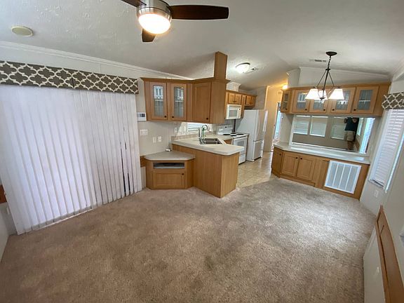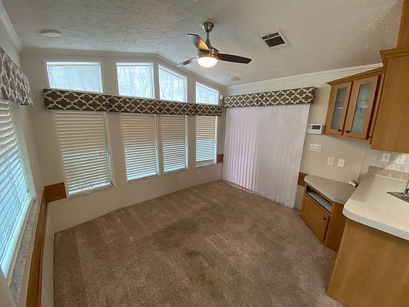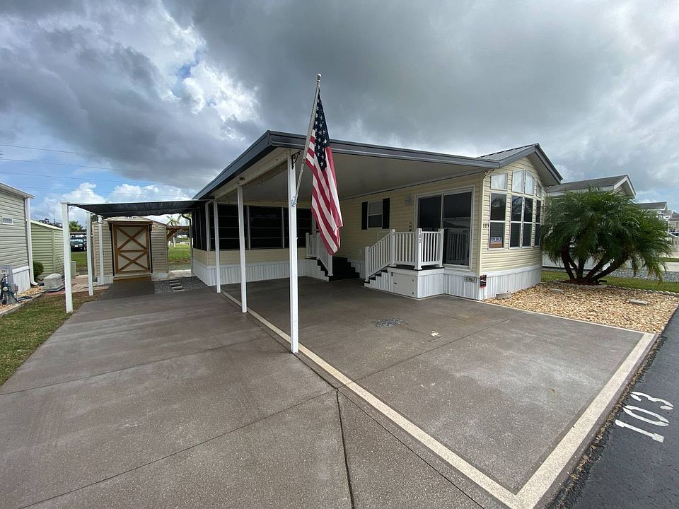 2003 EXPANDED PARK MODEL IN ALL AGE COMMUNITY, Amazing Pool, 2 Car Carport, Huge insulated Florida Room with mini split AC, could easily be second bedroom or extra living space. New Deck in Back, Newer Steel Roof. Home is extremely well cared for. This beautiful home has many upgrades, truly move in condition, turn key and ready to enjoy. Great water view off rear deck with no rear neighbors. Kitchen has been updated. All appliances including washer and dryer and 2 TV's to remain. Blueberry Hill has fabulous resort quality amenities including heated pool, pickleball, shuffleboard, fitness center, game room, billiards, bocci ball, and a bike trail. Great location with easy access to I-75, Walmart and lots restaurants close by. Excellent management at this park allows you to rent long term and as well as seasonally or AirBNB. Low monthly lot rent of 582 includes trash and lawn care. Call Today!