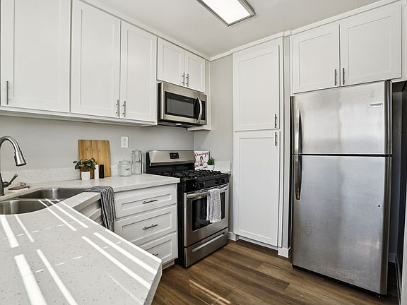Quiet residential neighborhoodWhite quartz kitchen countersEnergy efficient appliancesEspresso stained wood cabinetsNewly renovated apartments