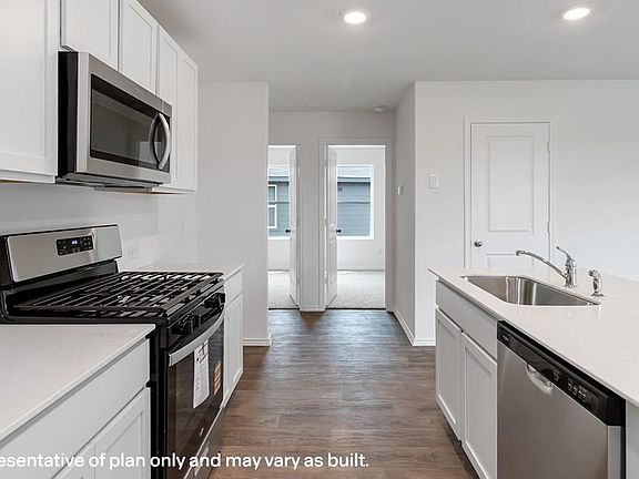 Discover the charm of the Emma floor plan, a thoughtfully designed single-story home featuring 4 bedrooms, 2 bathrooms, and a 2-car garage. Enter through the inviting front porch into a welcoming foyer, where a secondary bedroom is located at the front ideal for guests or a home office. A full secondary bathroom and utility room are conveniently nearby. Continue into the open-concept heart of the home, where the kitchen, dining room, and family room seamlessly connect. The kitchen boasts stainless steel appliances, a large island, and a spacious pantry, making it perfect for entertaining or casual family meals. At the rear of the home, the primary bedroom provides a peaceful retreat complete with a walk-in closet and a private bathroom featuring dual sinks and a large shower. Two additional secondary bedrooms are located nearby, offering plenty of space for family or guests.