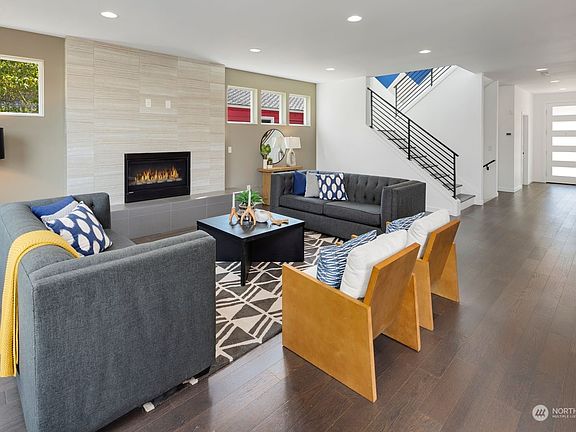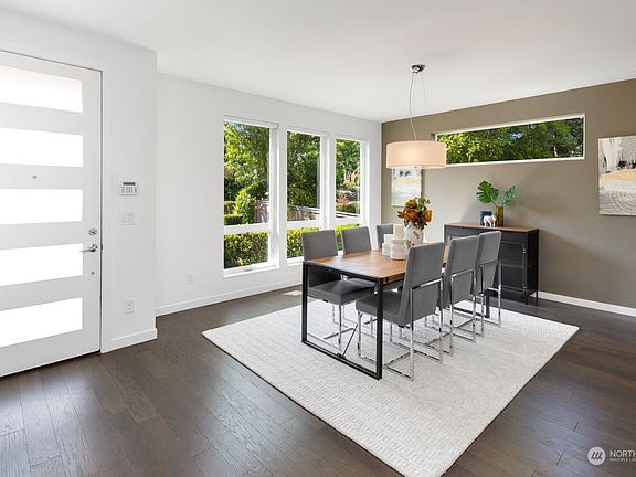 Modern luxury awaits you in this stunning urban retreat! High-end finishes around every turn with full-length windows, metal clad stairways & a spacious layout dressed in lux wood/stone finishes. Open living & dining areas flow around a grand island-style kitchen w/ built-in stainless appliances, quartz countertops & sleek Euro-inspired cabinetry. Step out to the private deck to take-in the territorial views. All 4 bedrooms are upstairs together, including your huge primary suite w/ walk-in closet & spa-like 5-piece bath. Office on the main level & large family room in the daylight basement w/ patio add for extra flex space. High-efficiency systems & central A/C! Stroll to parks, cafés & top-rated schools from this coveted Bryant location!