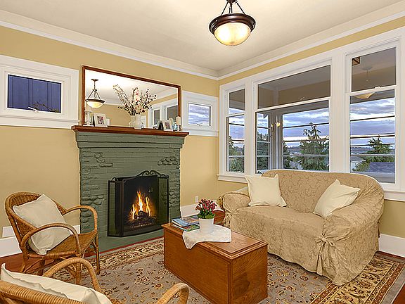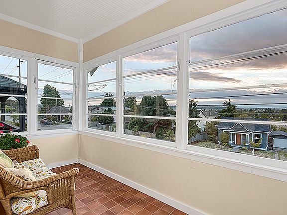 Sunset views abound from this west facing Phinney Craftsman. Features include an oversized chef's kitchen w/ gas stove, eco-friendly paperstone counters, & abundant cabinets; a large sun filled living & dining room that takes full advantage of Olympic Mt views; a front & back sunroom; a bathroom w/ pedestal sink & claw foot tub; a large unfinished basement ready for finishing touches; garage parking; & a peaceful backyard retreat w/ multiple patios & decks. Easy 10 minute commute to downtown!