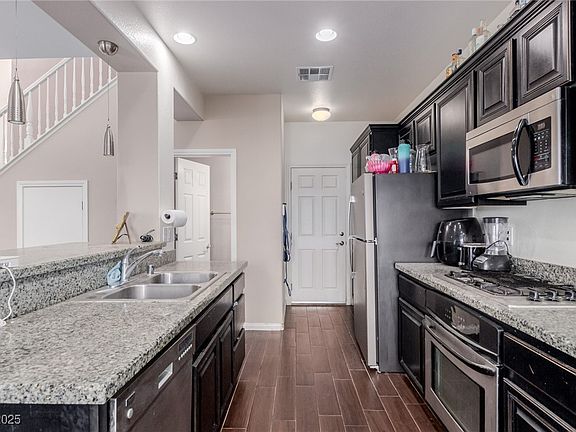Home, sweet home! Explore this attractive corner lot property showcasing a 2-car garage and a tasteful paver driveway for a fantastic curb appeal. Discover a bright & inviting living room enhanced by neutral palette, window blinds, and stylish wood-look tile flooring. Well-appointed kitchen boasts granite counters, ample cabinetry with crown moulding, pendant & recessed lighting, stainless steel appliances, a center island with a breakfast bar, and a dining area with sliding glass doors to the back patio. For added convenience, a powder room is located on the main level. A cozy loft is ideal for a reading nook. Sizable primary bedroom features soft carpeting, an ensuite with double sinks, and a walk-in closet. Imagine tranquil evenings on the open patio, perfect for enjoying a good book or a refreshing drink. Don't miss out on this gem!