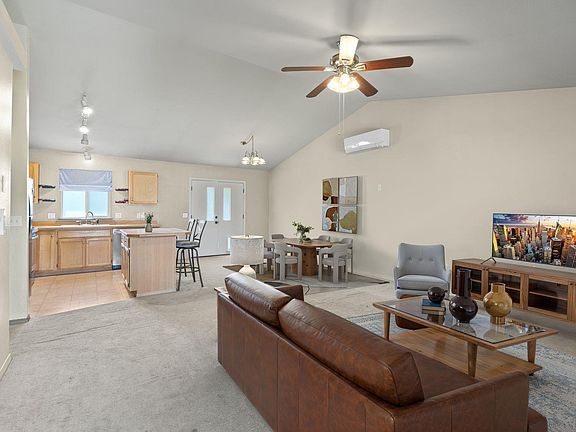 This charming 3BD/2BA Rathdrum home offers low energy costs thanks to solar panels and a mini-split system for heating and cooling. The solar panels have been paid in full by the seller- a $40,000 investment. The open-concept layout features vaulted ceilings, fresh interior paint, and updated kitchen appliances. Enjoy the convenience of single-level living, a 2-car attached garage, and a newly fenced backyard with a sprinkler system in both the front and back yards—perfect for pets, play, or gardening. Located just a short walk from Majestic Park—Rathdrum's favorite community spot with a splash pad for kids, baseball fields, a playground, picnic tables, and a dog park—this home is also close to schools, North Idaho College, shopping, and local amenities. With no HOA, minimal utility costs, and a peaceful residential setting, this well-maintained property offers comfort, convenience, and practicality. Take in mountain views from your front yard or relax on the back patio—move-in ready!