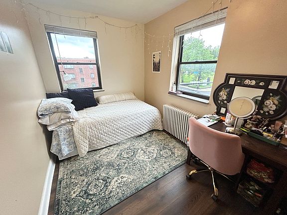 Each apartment contains a large master bedroom with a large double wide window and a smaller second bedroom, which single people use as an office or den. The second bedroom is smaller but does fit a double bed, night stand and chest or set of drawers. Please note the photos of the living room/kitchen/bathroom are of the exact unit number, but bedrooms may be example photos from another unit. Every unit has same size bedrooms, only difference would be if the smaller bedroom has one or two windows.